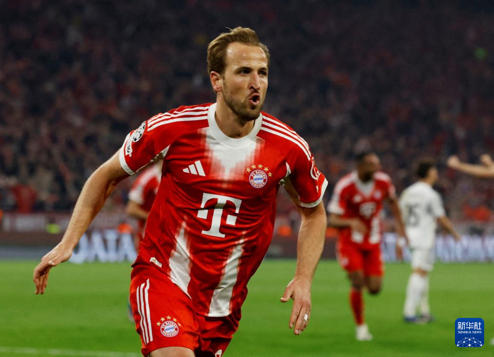 拜仁慕尼黑球员凯恩在比赛中庆祝进球(图据新华社)