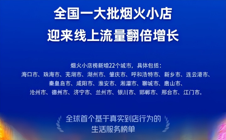 由于高德扫街榜火爆,大受商家欢迎,“烟火小店榜”将再扩展22城,包括海口、珠海、秦皇岛等。