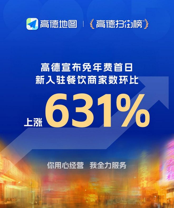 这一政策实施后不到24小时,单日新入驻高德的餐饮商家数已环比暴涨631%,创造历史峰值。